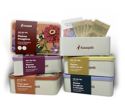 This offer, originally available only to our private customers, is unique and specific to Kokopelli. It consists of a wide diversity of varieties, grouped by theme, and allows gardeners to discover heirloom vegetables, aromatic plants, useful plants, and more at a lower cost. In fact, each “rainbow” has – in a beautiful metal box that will serve for many years – an explosion of colors and flavors!