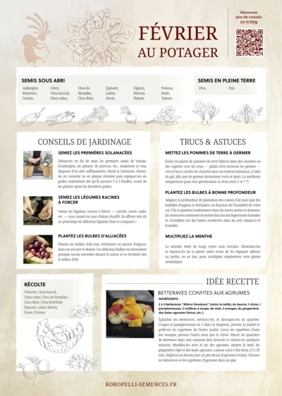 Pour des conseils détaillés sur les semis et l'entretien du potager en février, consultez notre article : Que faire en février au potager ? Le guide à télécharger est en cours de création, il sera bientôt mis en ligne.